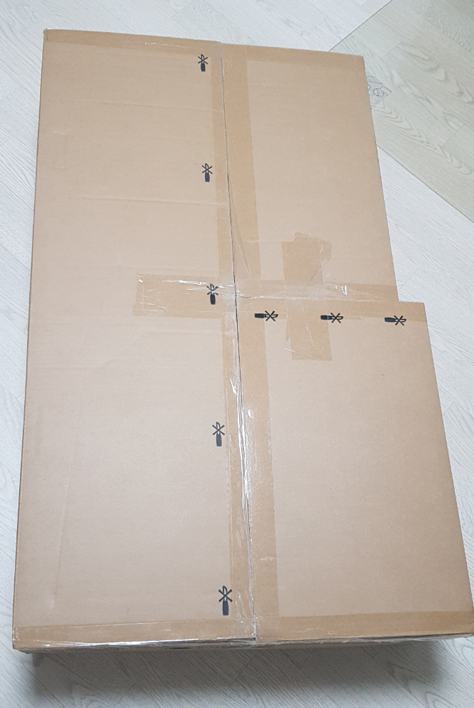 박스는 생각보다 작았습니다. 칼을 쓰지말라고 적힌것을 보니 등판이 상자에 붙어있는것 같습니다. 가위로 자르고 테이프를 뜯어냅니다.